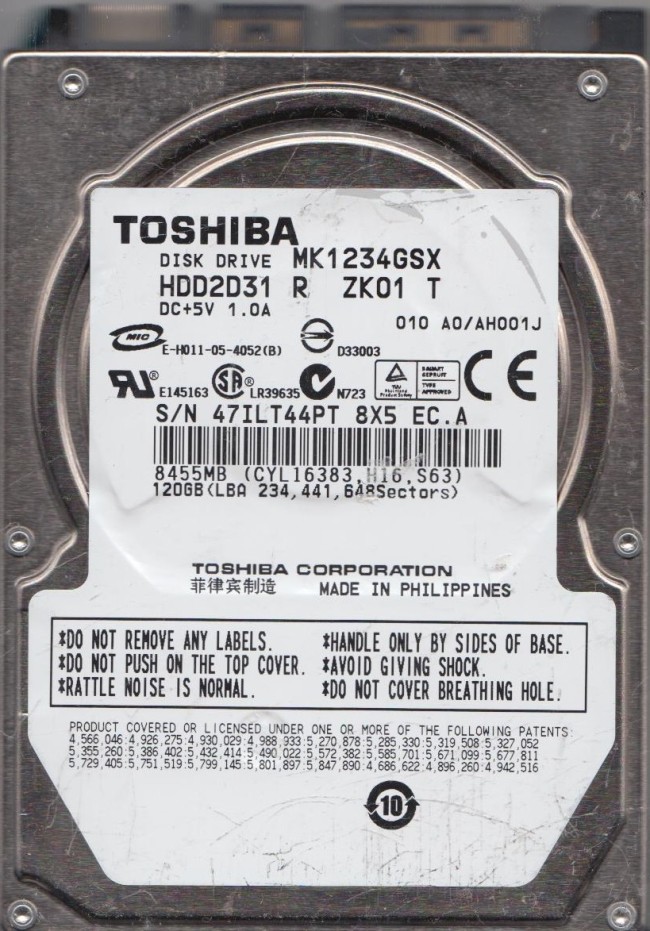 هارد اینترنال لپتاپ توشیبا مدل MK1234GSX ظرفیت 120 گیگ