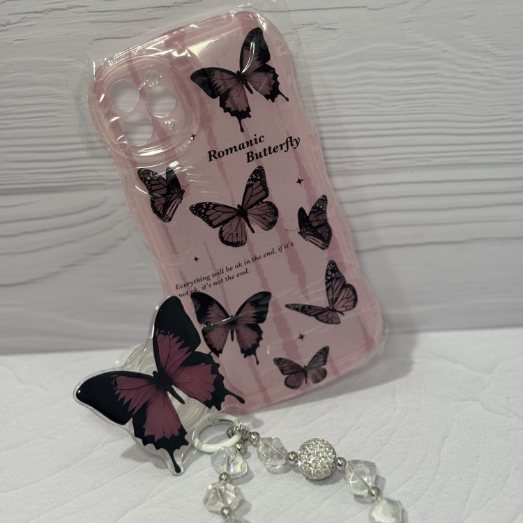 قاب پروانه رومانتیک صورتی با آویز iphone 11 promax