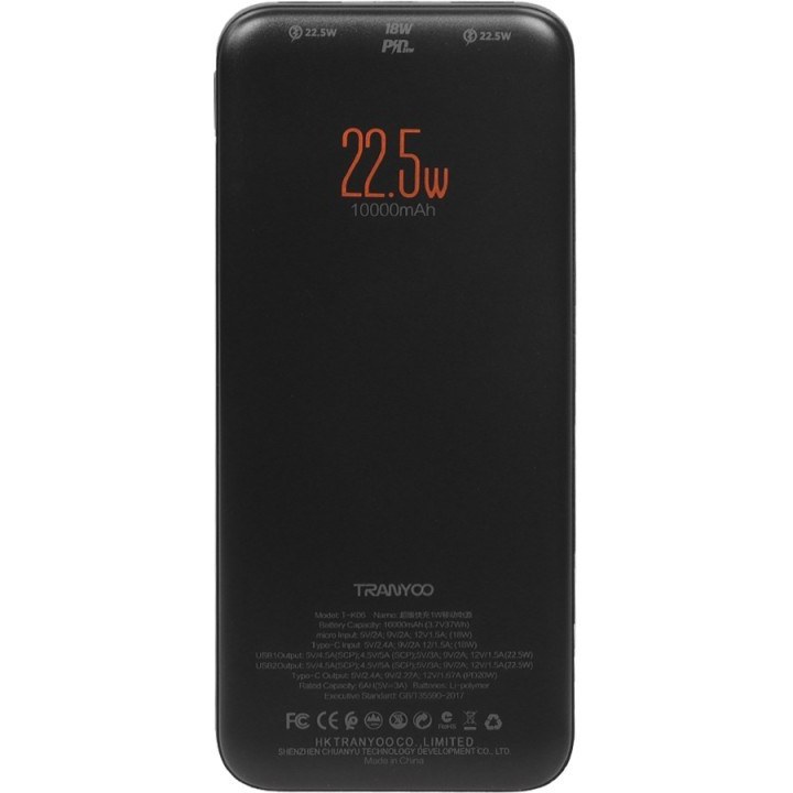 پاوربانک ترانیو K06 از محصولات شرکت ترانیو است که برای افرادی که به دنبال یک پاوربانک با ظرفیت بالا و مقاومت بالا هستند، مناسب است. این پاوربانک دارای ظاهری ساده و کلاسیک با پوشش پلاستیک ABS با روکش UV ضد خش می باشد. در این پاوربانک، از تکنولوژی شارژ سریع QC 3.0 و PD (Power Delivery) استفاده شده است که به کاربران امکان شارژ سریع دستگاه ها را با استفاده از کابل های Type C و معمولی (USB) می دهد. همچنین پاوربانک K06 ترانیو با 2 پورت ورودی 5 ولت 2 آمپر و خروجی 5 آمپر 22.5 وات به کاربران امکان شارژ سریع دستگاه ها را با سرعت بالا به آن ها می دهد. به دلیل داشتن یک پورت خروجی Type C با قابلیت شارژ با تکنولوژی PD این پاوربانک به کاربران امکان شارژ سریع لپ تاپ هایی که با این تکنولوژی سازگار هستند ( مانند لپ تاپ های شرکت Apple ) را می دهد. همچنین با باتری 10000 میلی آمپر ساعت، این پاوربانک به کاربران امکان استفاده طولانی مدت در سفرها و رویدادها را می دهد. در کل، پاوربانک K06 دارای مقاومت بالایی است و برای افرادی که به دنبال پاوربانک با ظرفیت و عملکرد بالا هستند، مناسب است.