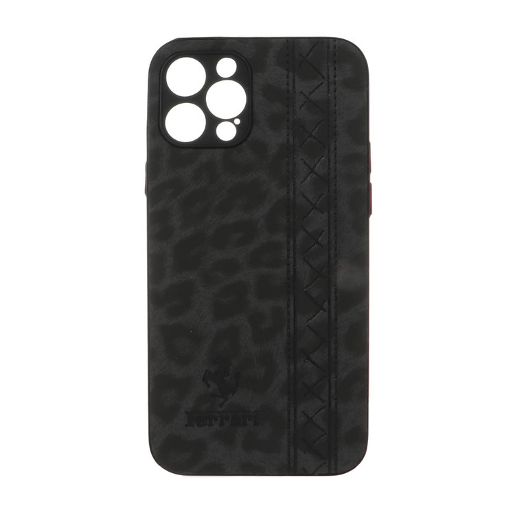 قاب گوشیiPhone 13 Pro Max طرح چرم پلنگی محافظ لنزدار Ferrari